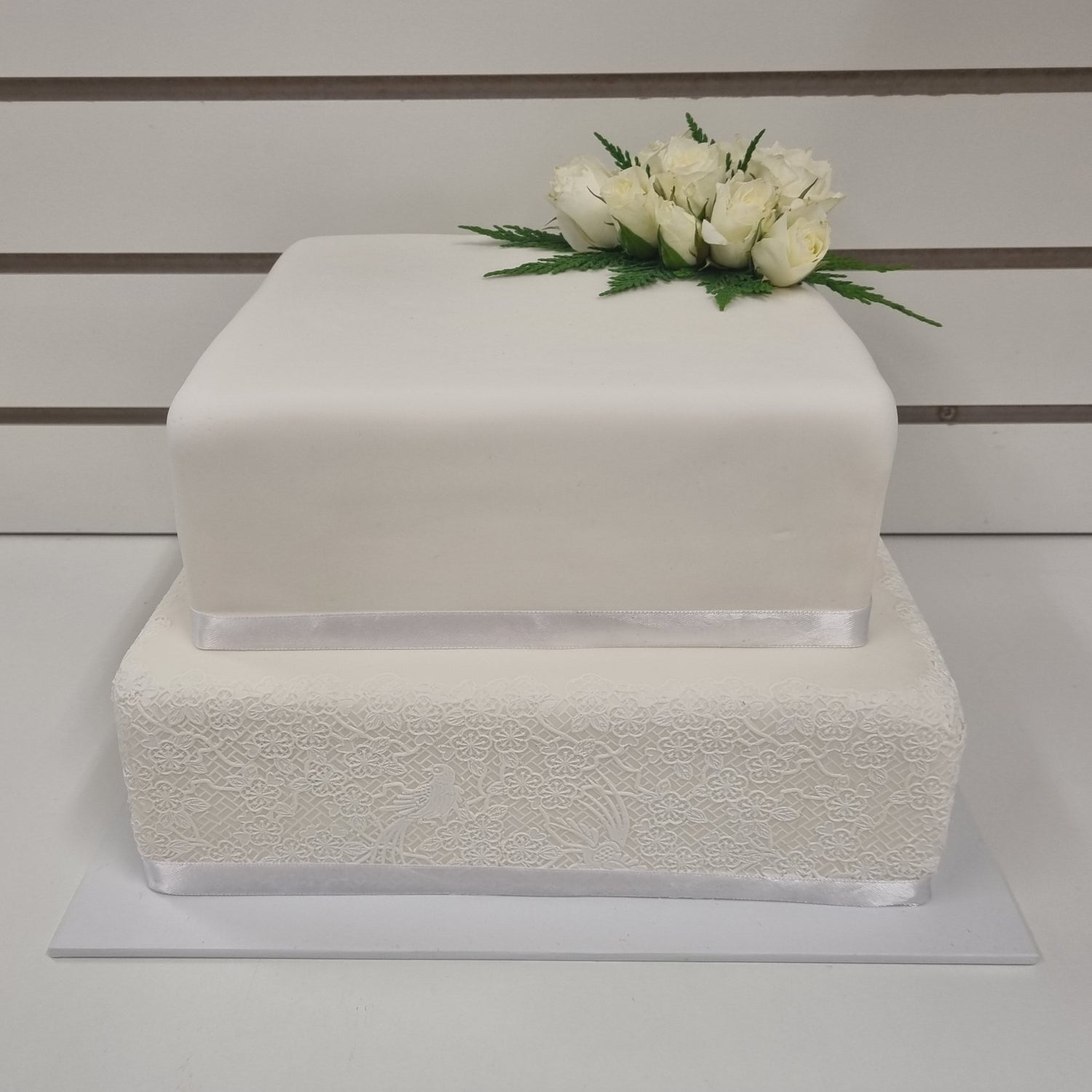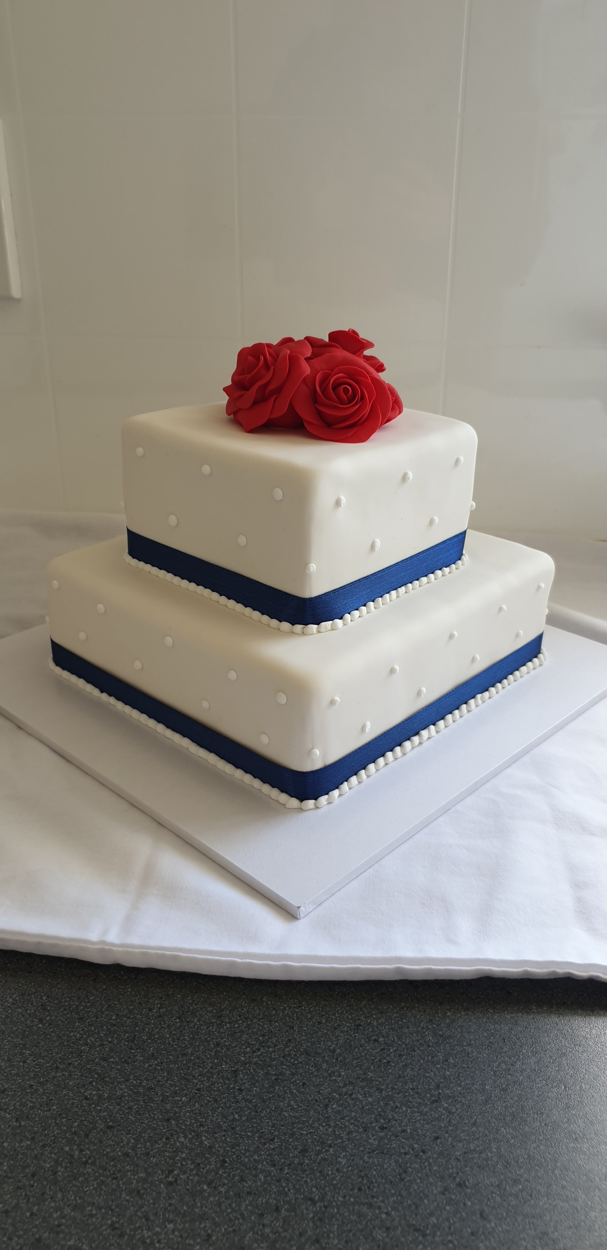 We will set up the cake on site and will be able to attend to any touch ups as required.